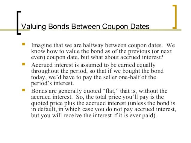 Solved If a stock pays a constant annual dividend then the ... d) fixed coupon bond present value formula. e) present value of an annuity due formula. Question: If a stock pays a constant annual dividend then the stock can be valued using the: a) perpetuity present value formula. b)present value of an ordinary annuity formula. c) payout ratio formula. d) fixed coupon bond present value formula. Bond Valuation Definition - Investopedia Present value of semi-annual payments = 25 / (1.015) 1 + 25 / (1.015) 2 + 25 / (1.015) 3 + 25 / (1.015) 4 = 96.36 Present value of face value = 1000 / (1.015) 4 = 942.18 Therefore, the value of the... Bond Valuation: Formula, Steps & Examples - Study.com Bond Terms. Horse Rocket Software has issued a five-year bond with a face value of $1,000 and a 10% coupon rate. Interest is paid annually. Similar bonds in the market have a discount rate of 12%. Zero Coupon Bond Value - Formula (with Calculator) A 5 year zero coupon bond is issued with a face value of $100 and a rate of 6%. Looking at the formula, $100 would be F, 6% would be r, and t would be 5 years. After solving the equation, the original price or value would be $74.73. After 5 years, the bond could then be redeemed for the $100 face value.